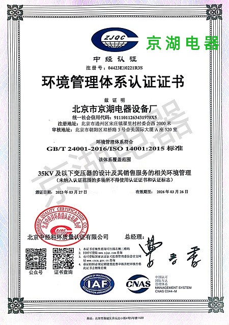 北京市京湖電器設備廠成立于1998年3月18日,座落于風景優(yōu)美、交通便利的北京市通州區,是一家電力變壓器專業生產企業,產品通過ISO9001質量,ISO14001環(huán)境和OHSAS18001職業健康認證,企業現有建筑面積8600平方米,職工96人,含中**技術人員20余人,具有**于國際水平的真空、正壓浸漆設備、鐵芯卷繞···